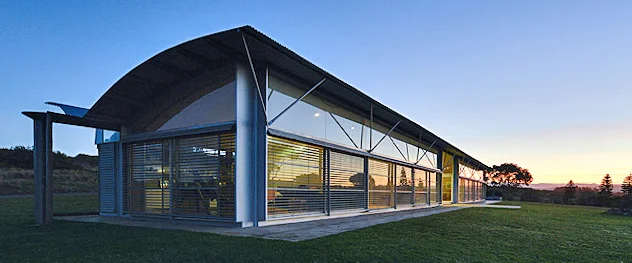 Located on the Shoalhaven River, the centre serves as a residential retreat for artists and students. It sits in a landscape of extraordinary beauty rolling hills, the shimmer of water, and vast Australian skies. Murcutt approached the project with reverence, ensuring the building did not compete with its surroundings but became part of them.